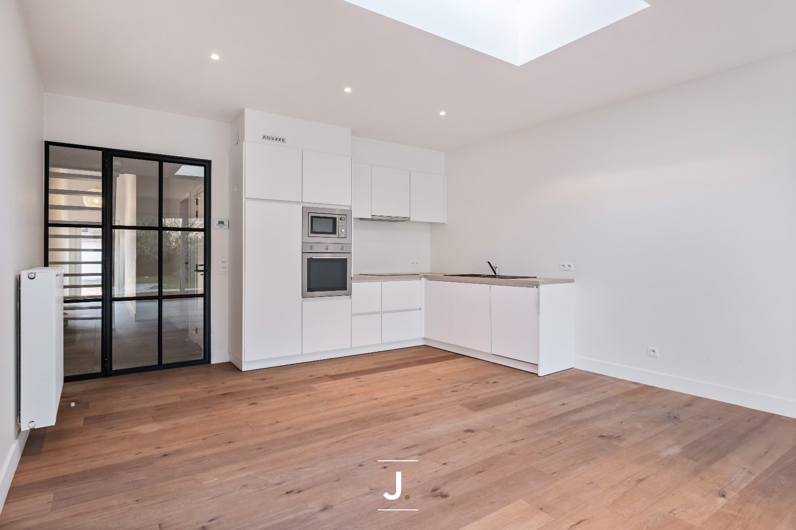 Achter deze charmante gevel schuilt een stijlvolle en lichtrijke woning die tot in de puntjes werd afgewerkt met hoogwaardige materialen. De open indeling, grote raampartijen en het gebruik van strakke, moderne elementen zorgen voor een warm en ruimtelijk gevoel.